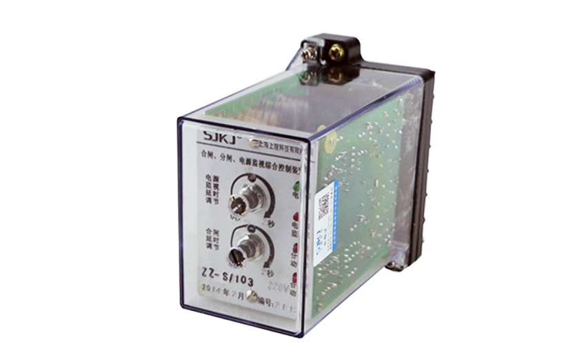 ZZ-S-11分閘、合閘、電源監視綜合控制裝置可連續監視斷路器中的直流電源及整個跳閘回路。當直流電源消失、跳閘線圈及引線發生故障,繼電器經0. 3秒延時返回并通過它的觸點發出報警信號。